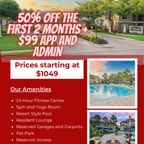 Welcome to The Fuse at Park Row, a residential community featuring one, two and three bedroom apartments in Houston, TX. Spacious layouts and amenities welcome you home, along with exceptional service and an ideal location within walking distance to shopping, dining and entertainment options. Located in the top-rated Katy ISD and next to the Energy Corridor, our apartments on Highway 6 offer a great world of opportunity here in West Houston/Katy area. Are you looking for an apartment for rent in Houston, TX? Contact our friendly, professional office staff to schedule a tour today.